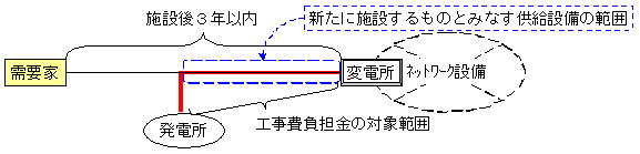 施設後3年以内の既設の供給設備を利用する場合は、新たに施設する供給設備とみなし、工事費負担金の対象といたします。
