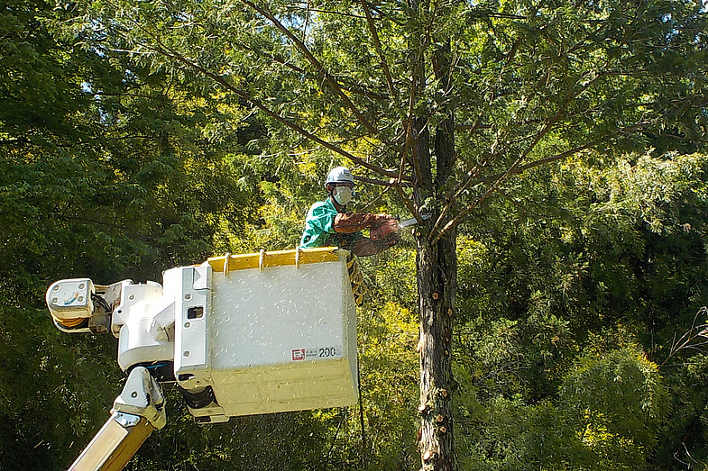 樹木の枝払い、樹木を根元から切断し伐倒するなどの工事を行います。