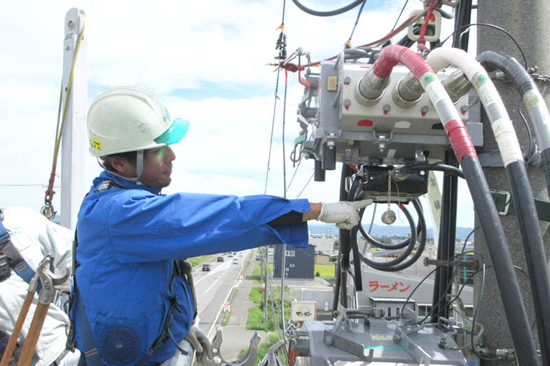 私が配電工を目指したのは、地域の電気を支える先輩たちの姿に感動し、自分も地域の電気を守りたいと思ったからです。ただ、この仕事は、気象条件に左右されることもあり、命に関わる作業を伴います。数年前に自然災害で停電した時、「電気が止まったら孫が亡くなってしまう!」という声を聞き、あらためて電気の重要性を痛感し、この仕事がかけがえのない命を支えているのだなと実感しました。