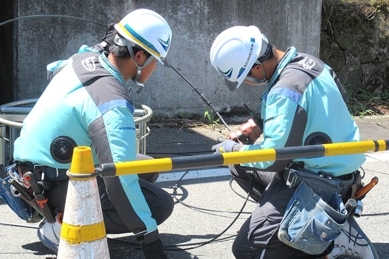 システムがある配電工は日々の業務を通して、先輩が持つ豊富な現場スキルを学びます。また、研修を通して必要な知識や技術を適宜身につけることができます。最初は高所作業を怖いと感じるかもしれませんが、徐々に慣れていくので心配ありません。着実に技術をみがいていくことができます。